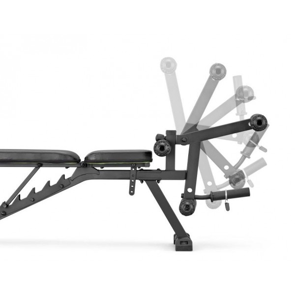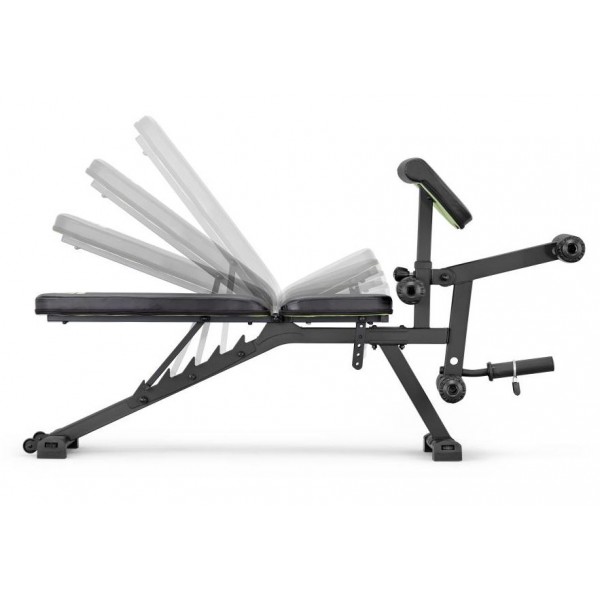 Беспроблемную эксплуатацию с большими весами обеспечивает использованная в модели высокопрочная легированная сталь, чьи показатели надежности на 65% превышает параметры стандартных тренажеров. Предусмотрено 4 положения спинки и сидения для проработки различных мышц. Для упражнений на ноги установлен нагружаемый блок, чье положение также регулируется под рост пользователя. Модель предлагает спортсменам:
