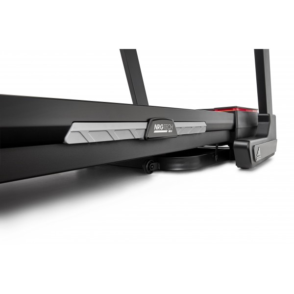 Двигатель на 2,75 л. с. обеспечивает скорость движения спортсмена до 20 км/ч, а широкое беговое полотно будет комфортным для бега при разном росте. Амортизация NRG Cushioning позаботится о здоровье суставов во время бега. Нагрузку занятий можно менять и с помощью угла наклона дорожки (15 вариантов). Показатели пульса передадут на консоль датчики в поручнях.