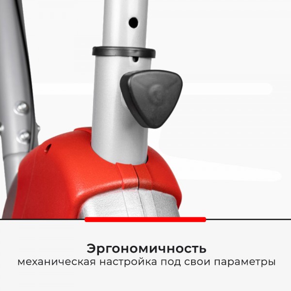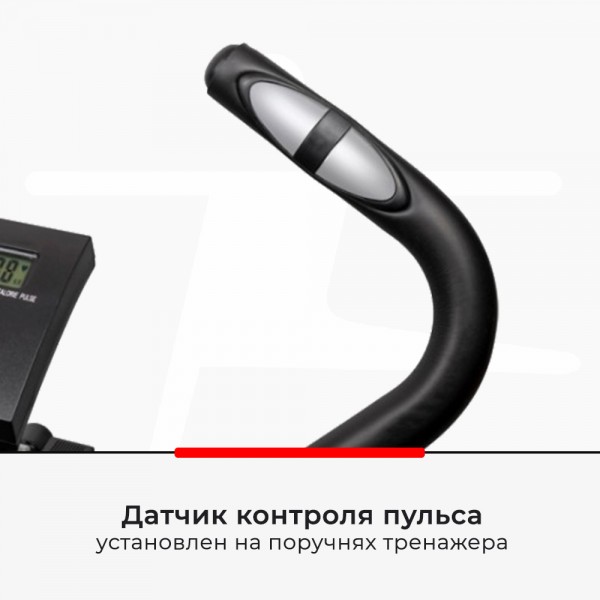 Тренажер имеет возможность регулировки высоты седла и руля (круговая). Шатун выполнен с хромированным покрытием. Предусмотрены датчики проверки пульса на поручнях руля.