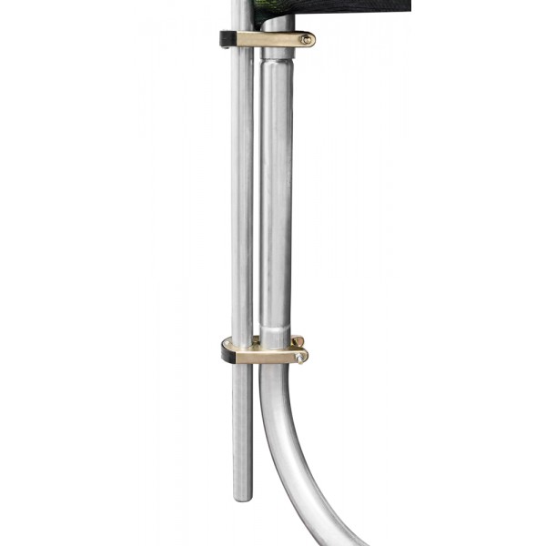 Модель использует прочный каркас с удлиненными стойками для сетки, что повышает устойчивость батута и увеличивает сопротивляемость данных стоек на излом. Надежная фиксация к пружинам закрыта специальным кожухом, а само прыжковое полотно произведено из высококачественного американского материала Перматрон. Батут комплектуется лестницей.