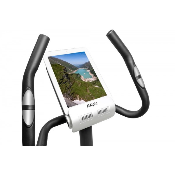 Плавное движение педалей обеспечивает сбалансированный маховик 6 кг, а надежность гарантирует усиленная рама и 3-компонентый педальный узел, а также подшипники высокого качества. Уровень нагрузки меняется электронно, в пределах 30-350 Ватт (шаг 10). Комфортные педали и настройка седла в двух плоскостях позволяют занять оптимальное положение на тренажере. Предусмотрена проверка работы сердца сенсорами на поручнях.