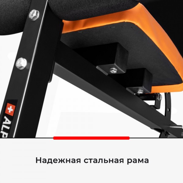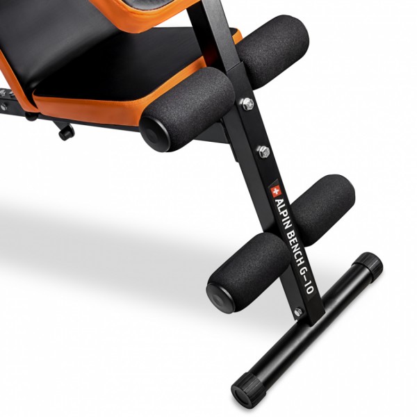 Alpin Bench G-10 – силовая скамья с партой Скотта, которая предлагает широкий диапазон регулировки для домашних тренировок. Общий вес нагрузки не должен превышать 250 кг.