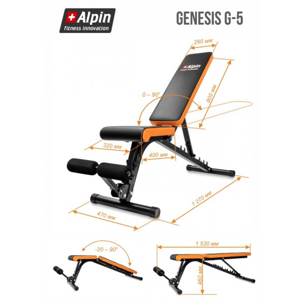 Alpin Genesis G-5 – силовая скамья, которая позволит выполнять дома различные упражнения, в том числе со свободными весами (до 200 кг).