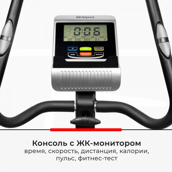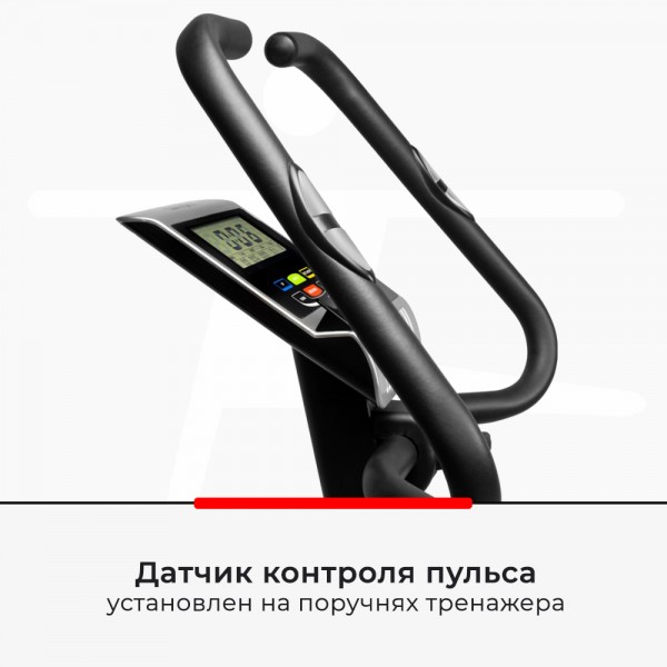 Модель оснащена маховиком 9 кг, 3х-компонентым педальным узлом и прочной рамой. Задать нужную нагрузку можно вручную (8 положений). За счет регулировки положения седла в 2х плоскостях и круговому движению руля (включая положение "трасса") спортсмен любой комплекции сможет занять комфортную позицию. Есть датчики для проверки пульса.