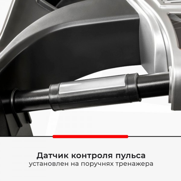 В конструкции установлен мотор постоянного тока на 2 л. с., используется прочная дека и беговое полотно толщиной 1,8 мм. Датчики в поручнях считывают показатели работы сердца, есть регулировка наклона (до 15%). Для снижения нагрузки на суставы и позвоночник установлены две гидроподушки и четыре плоских эластомера. Система смазки полотна максимально упрощена для пользователя и выполняется нажатием кнопки.