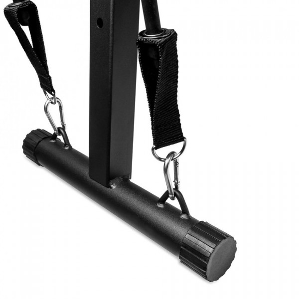 Рама модели изготовлена из надежного стального профиля. Скамья предлагает: