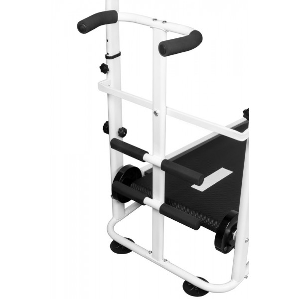 Тренажер основан на прочной раме, а толщина бегового полотна и деки позволяет заниматься спортсменам весом до 100 кг. Модель предлагает 8 встроенных программ, систему амортизации для защиты суставов, компенсации неровностей и транспортировочные ролики. Управление режимами тренировки производится при помощи пульт-браслета.