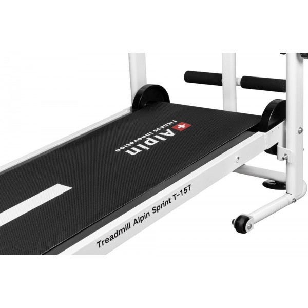 Alpin Sprint T-157 – современная беговая дорожка, собранная из надежных комплектующих. Одно из самых важных преимуществ этой дорожки - ее компактность в сложенном состоянии.