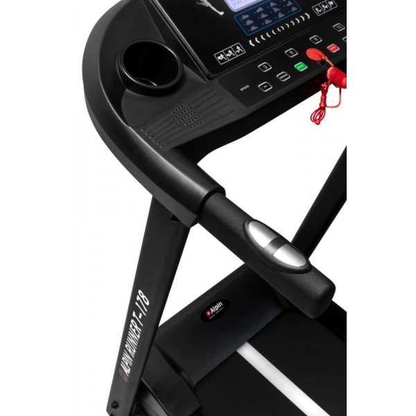 Alpin Runner T-178 – надежная беговая дорожка с функцией складывания и ручным увеличением наклона полотна, которая выдержит вес до 120 кг.