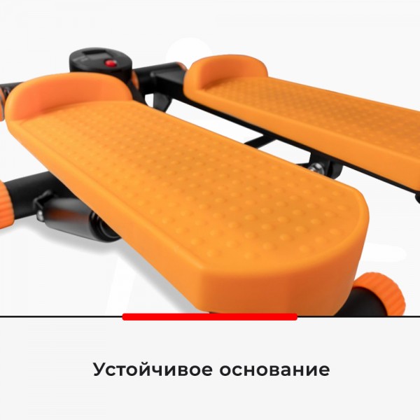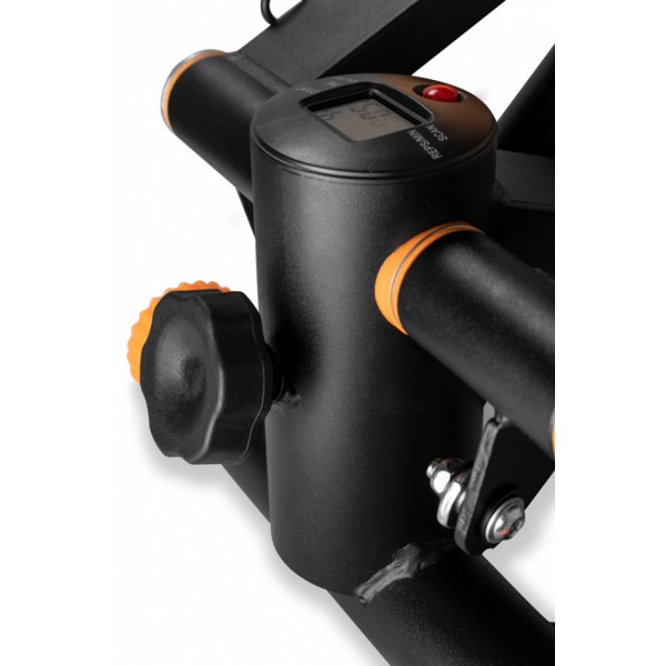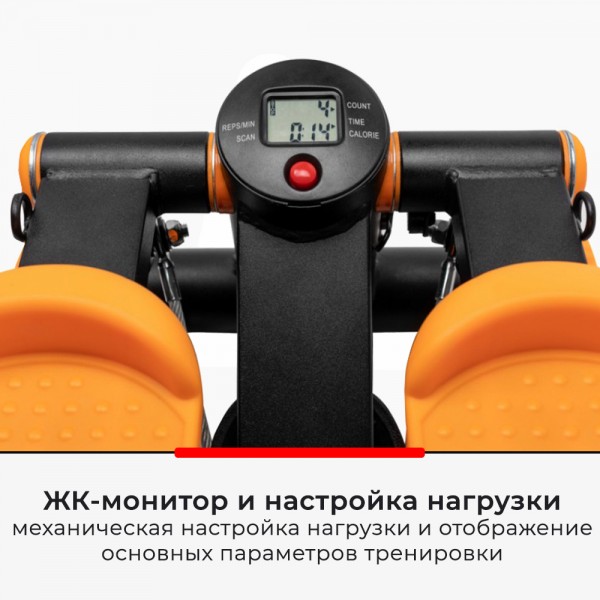 Тренажер предлагает гидравлический тип нагрузки. Удобные педали модели имеют антискользящую поверхность. В комплект входят два эспандера, которые позволяют добавить нагрузку на руки.