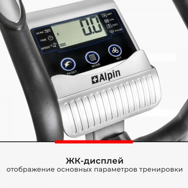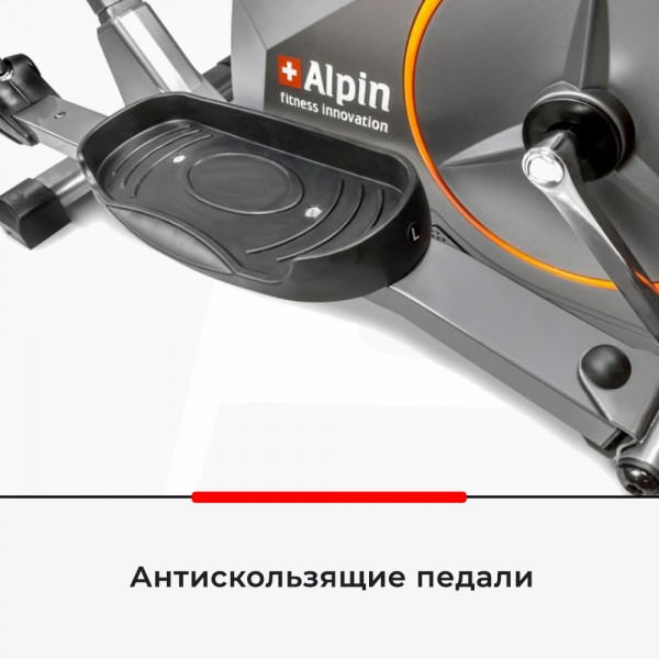 Alpin Mont Blanc X-180 - домашний эллипсоид средних габаритов с магнитным сопротивлением. Надежный тренажер от швейцарского бренда с привлекательным современным дизайном.