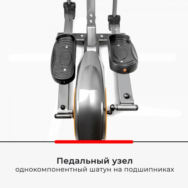 Тренажер рассчитан на пользователей весом до 120 кг, при этом желательный рост- до 180 см (длина шага 35 см). Эллипсоид оснащен задним приводом, Q-фактор составляет 19 см. Конструкция включает датчики проверки пульса. Есть ручная регулировка уровней нагрузки - 8 вариантов.