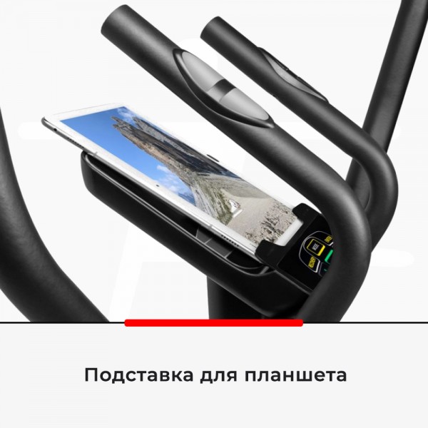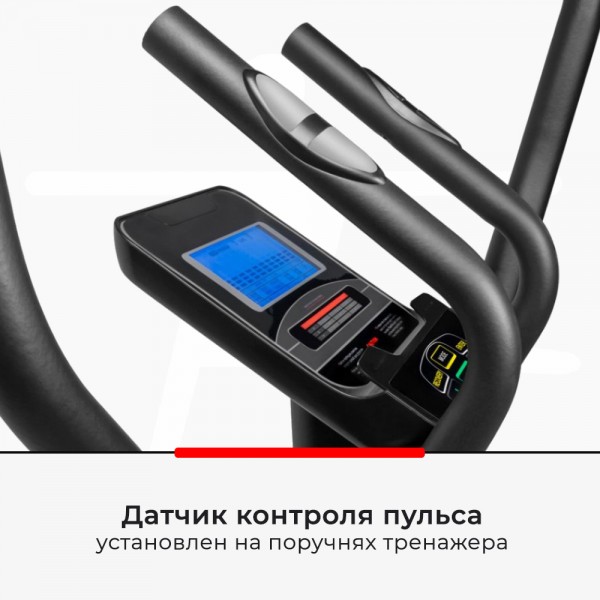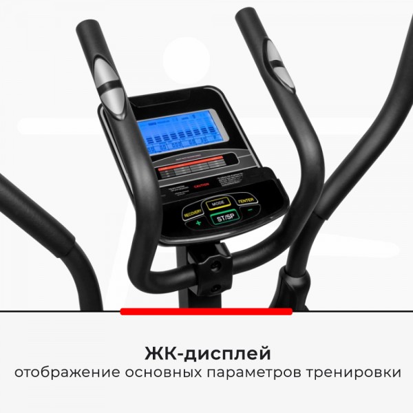 Тренажер рассчитан на пользователей весом до 120 кг, рекомендуемый рост - до 180 см (длина шага 35 см). Орбитрек оборудован задним приводом, Q-фактор модели - 19 см. На поручнях встроены датчики проверки пульса. Предусмотрена электронная настройка нагрузки (24 уровня), можно установить точное значение в Ваттах (эргометр).