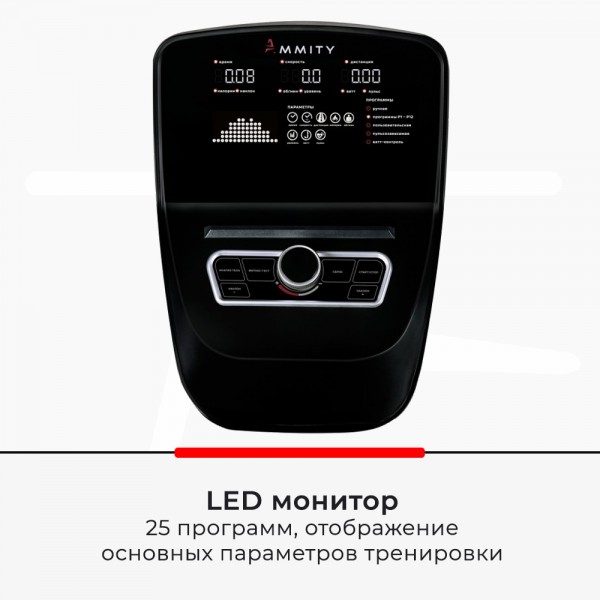 Ammity AMMV 61 AI – эллипсоид с электронной регулировкой наклона для интенсивных домашних тренировок. Тренажер с оптимальной биомеханикой и изменяемым шагом. Ограничение веса пользователя – 180 кг, рекомендованный рост от 155 до 200 см.
