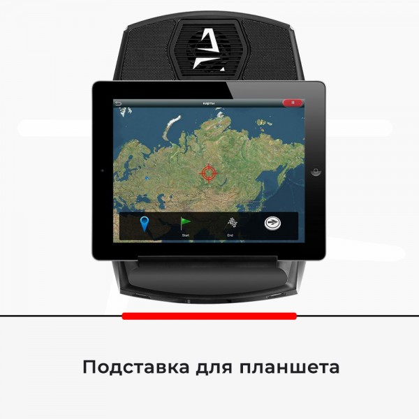 Семидюймовый экран покажет все данные о занятии и выбранной программе (на русском). Можно установить модуль Bluetooth (опция). Тренажер имеет 3-скоростной вентилятор и подставку для аксессуаров. Среди встроенных программ: