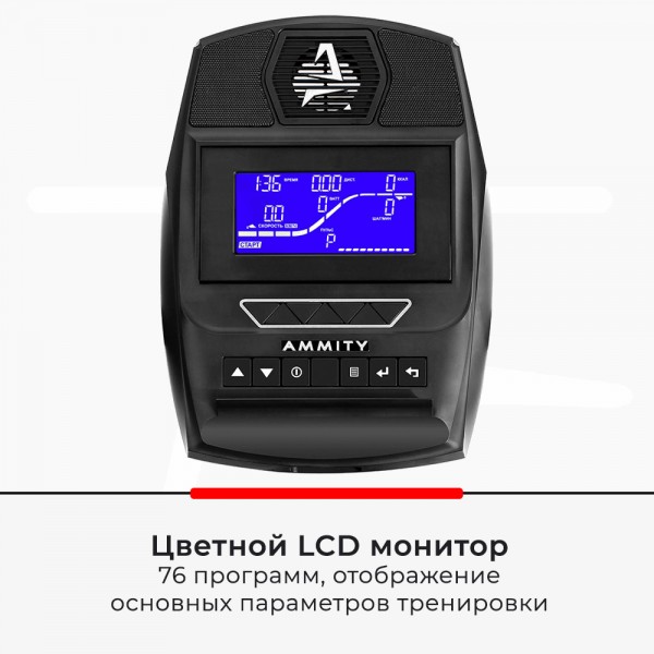 Тренажер оборудован эргономичными активными поручнями Move BioMech, которые подойдут пользователям любой комплекции. Пульс считывают датчики, возможно подключение кардиопояса (отдельно).