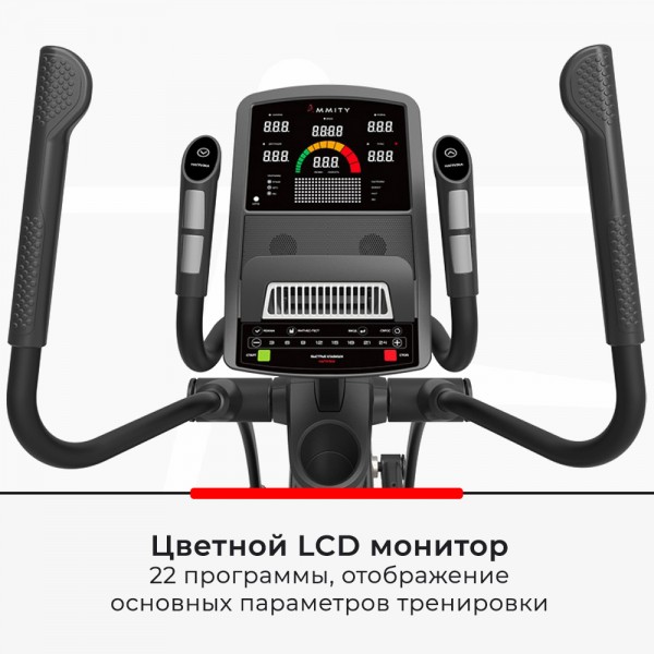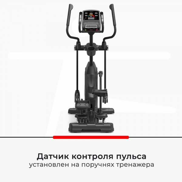 Тренажер оснащен активными поручнями Move BioMech, с которыми будет удобно заниматься людям разного роста и веса. Частоту пульса передают встроенные датчики, отдельно можно купить кардиопояс (опция).