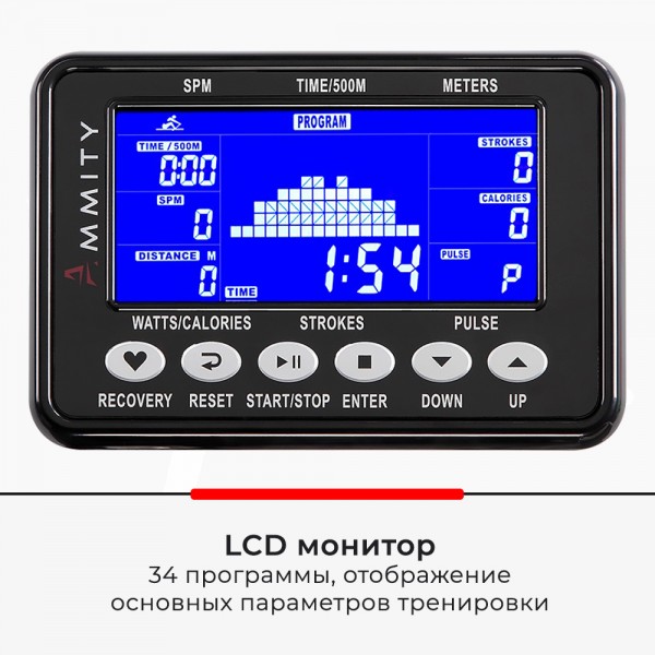 AMMITY Ocean ORM 5000 – гребной тренажер с оригинальным аэродинамическим сопротивлением AMC и расширенным набором программ соревнований (вес спортсмена до 160 кг).