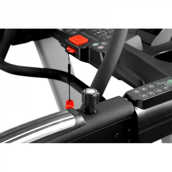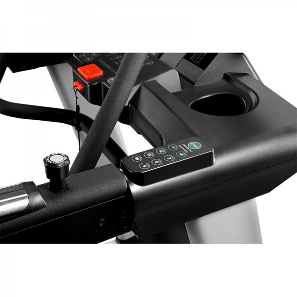 Модель использует роллеры диаметром 60 мм и профессиональное устройство для регулировки наклона. Датчики пульса встроены в поручни и передают на консоль нужную информацию, отдельно можно купить кардиопояс.