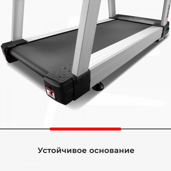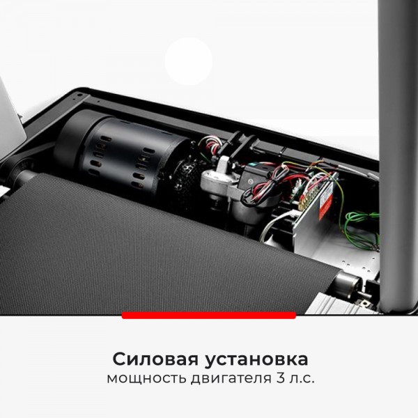 Установленный двигатель переменного тока на 3 л.с. позволяет спортсмену достичь скорости 20 км/ч. Прочная дека сочетается с износостойким 2-хслойным полотном и системой амортизации, которая бережет здоровье суставов и позвоночника. Есть возможность электронно увеличить угол наклона (15 уровней).