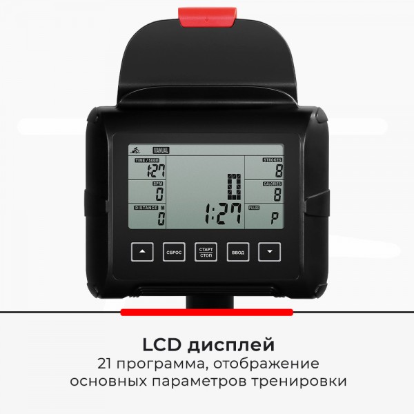 Система сопротивления состоит из бака с водой, который установлен под углом 45 градусов, что примерно на треть повышает эффективность конструкции. Предусмотрен выбор из 6 уровней нагрузки (есть эквивалент в Ваттах). Спортсмен получает тренировку с максимальной имитацией гребли на воде. Используется надежный трек (81,5 см) из алюминия и качественные подшипники, комфортабельное сидение и педали с изменением размера.