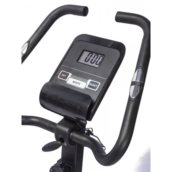 Модель оснащена маховиком 6 кг для создания равномерной нагрузки. Подобрать уровень нагрузки для эффективной тренировки можно вручную (8 уровней). Седло тренажера выполнено с регулировкой по двум направлениям, педали имеют надежную фиксацию стопы. Сенсоры для проверки пульса встроены в поручни.