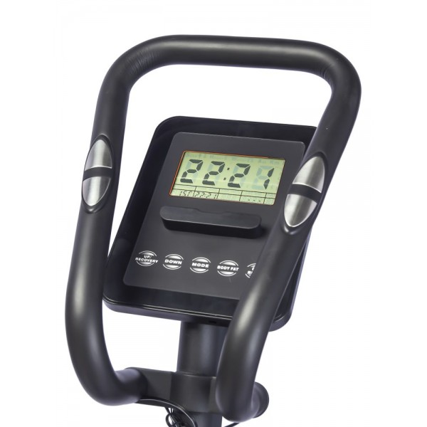 Пользоваться данным тренажером можно спортсменам весом до 110 кг. Вручную можно выбрать 8 вариантов нагрузки. Длина шага составляет 39,3 см, такая конструкция будет удобна при среднем росте. Предусмотрена возможность проверки пульса с помощью датчиков на поручнях.