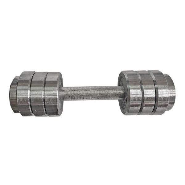 Гантель АтлантСпорт изготовлена из прочной стали 40XH. Рукоять имеет противосользящую насечку (диаметр 2,6 см, накатка 1х1 мм, межпосадочный интервал 13 см). В комплект входят две гайки по 0,3 кг и гриф весом 0,4 кг, а также шесть дисков по 0,5 кг.