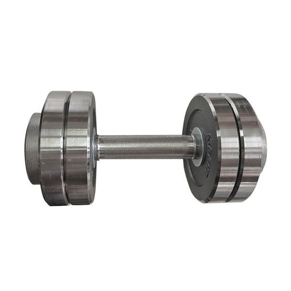Гантель АтлантСпорт изготовлена из прочной стали 40XH. Рукоять имеет противосользящую насечку (диаметр 2,6 см, накатка 1х1 мм, межпосадочный интервал 13 см). В комплект входят две гайки по 0,5 кг и гриф весом 1 кг, а также четыре диска по 1,5 кг.