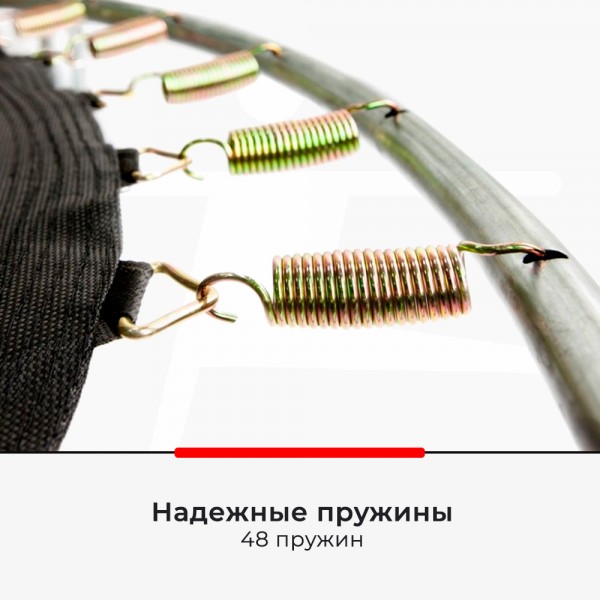 В основе каркаса используется оцинкованный стальной профиль и надежные пружины, которые закрыты специальным матом. Прыжковое полотно из Перматрона отлично переносит воздействие воды и солнца. В комплекте прилагается удобная лестница.