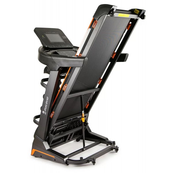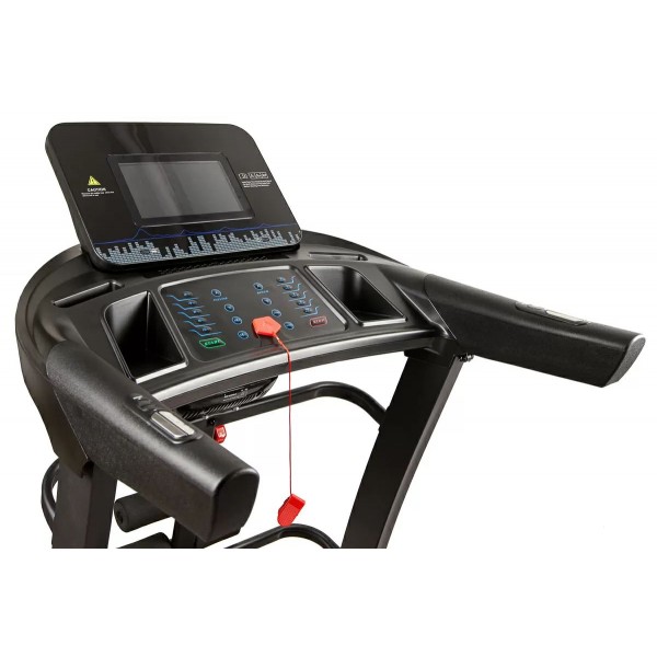 Дорожка работает на двигателе 3 л.с. и позволяет бежать на скорости до 18 км/ч. Габариты полотна подойдут спортсменам разного роста. Электронная настройка угла наклона поможет добавить нагрузку. Есть проверка работы сердца через датчики на поручнях.