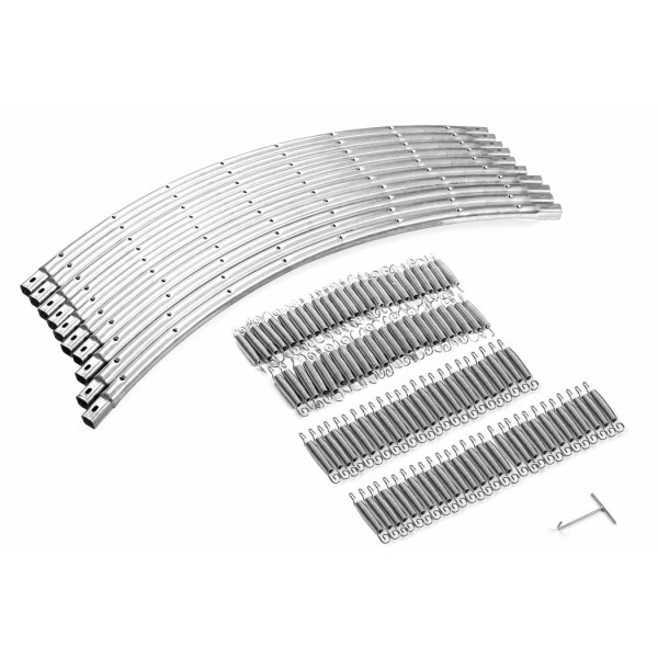 Модель изготовлена из стального профиля толщиной металла 1,4 мм, для сетки использован плотный нейлон, а полотно для прыжков устойчиво к воздействию окружающей среды. Сетка надежно фиксируется на входе. Лестница прилагается.