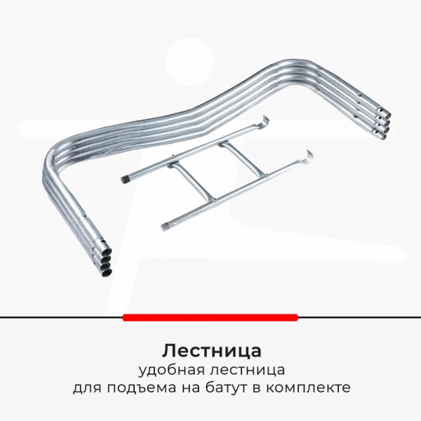 В основе каркаса используется оцинкованный стальной профиль и надежные пружины, которые закрыты специальным матом. Прыжковое полотно из Перматрона отлично переносит воздействие воды и солнца. В комплекте прилагается удобная лестница.