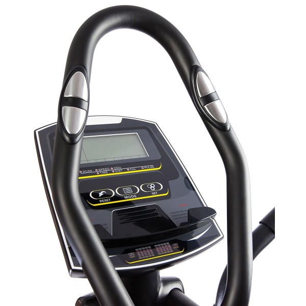 Электромагнитная нагрузка модели предлагает 16 уровней сложности. При длине шага в 46 см заниматься будет удобно спортсменам разного роста. Тренажер имеет датчики проверки пульса и ролики для перемещения в квартире.