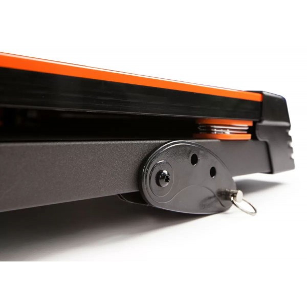 Тренажер легко переместить на роликах. и сложить с помощью гидравлического приспособления.