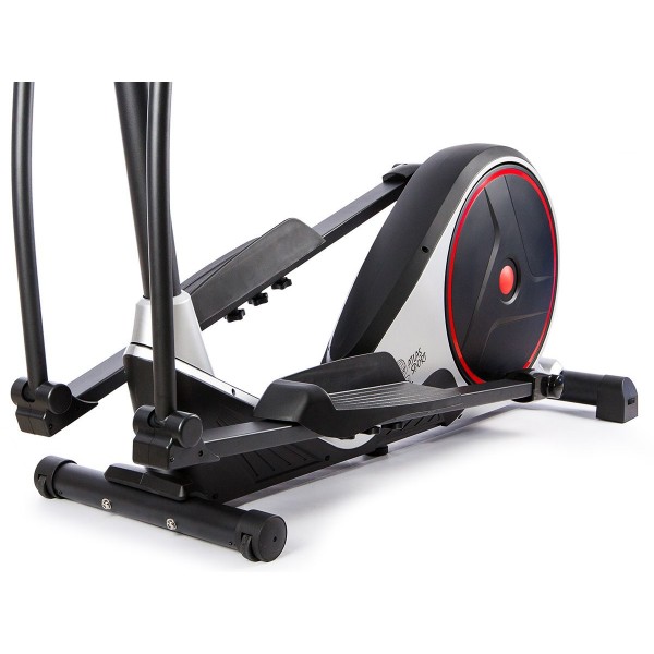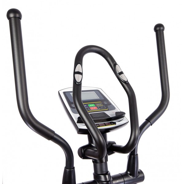Электромагнитная нагрузка данного орбитрека предусматривает 24 варианта сложности. Технические параметры длины шага позволяют заниматься спортсменам разного роста. Тренажер работает с низким уровнем шума. В поручни встроены датчики для контроля работы сердца.