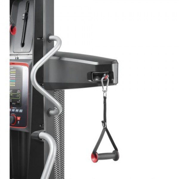 На уровне двойных тяг установлены 3 блока и специальный цифровой джойстик, который позволяет выбрать 16 уровней аэродинамической нагрузки. В сравнении с тренировкой на стандартном силовом оборудовании, число работающих мышц увеличивается в 5 раз, а число сжигаемых калорий находится на уровне забега на 2,5 км.