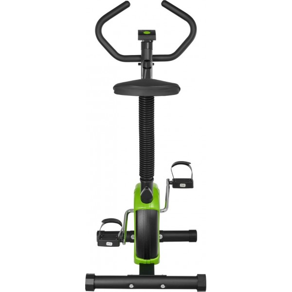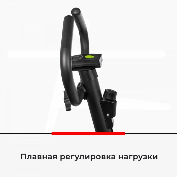 В тренажере можно настроить высоту седла и наклон поручней, педали имеют регулируемые ремни. Уровень нагрузки меняется поворотом переключателя под рулем.