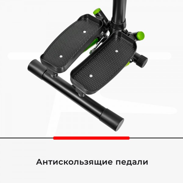 Высота стойки с поручнями регулируется, есть и настройка нагрузки. Конструкция рассчитана на вес до 100 кг. Удобные педали выполнены с антискользящей поверхностью.