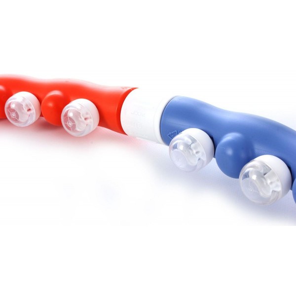 Конструкция включает 35 шариков, которые обеспечат отличный антицеллюлитный массаж. Чтобы обруч был удобен для ребенка, для сборки берут только 5 секций.