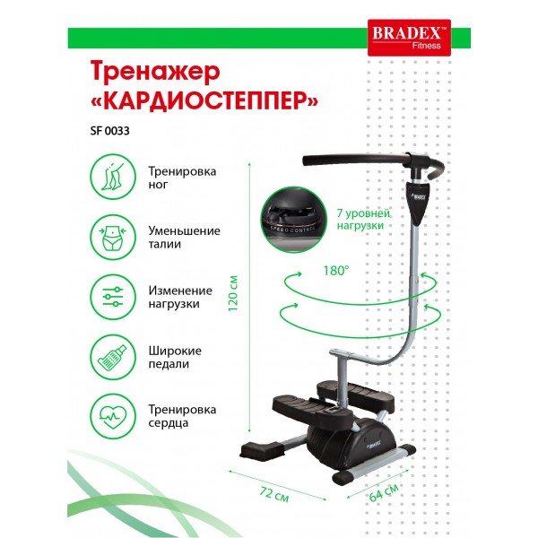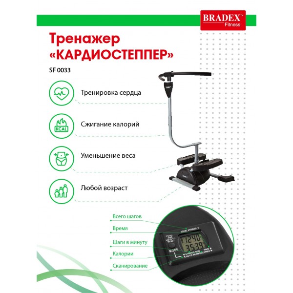 Bradex SF 0033 - домашний кардиостеппер с удобными поручнями для эффективных нагрузок на мышцы тела.