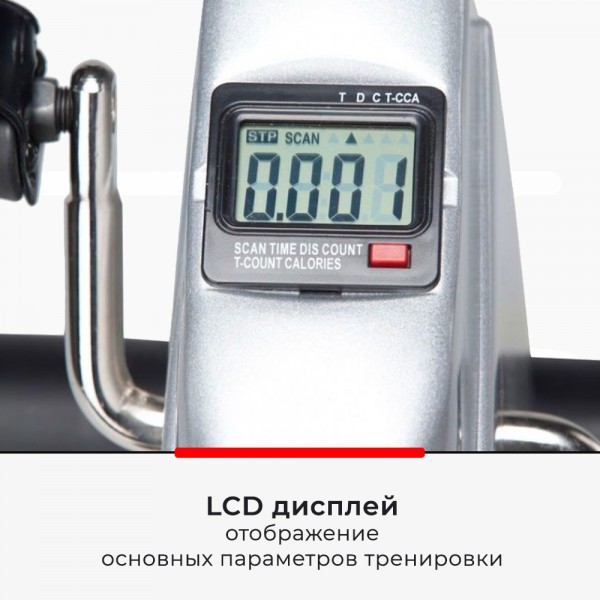 Тренажер позволяет плавно менять силу сопротивления педалей до 30 кг (ручная регулировка). Конструкция имеет устойчивые опоры.