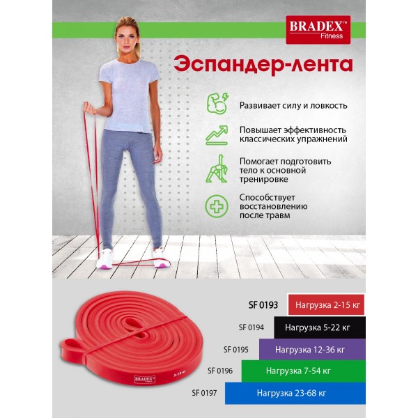 Bradex SF 0193 - ленточный эспандер для эффективной разминки или растяжки, увеличения нагрузки во время различных упражнений.