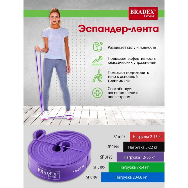 Bradex SF 0195 - ленточный эспандер для эффективной разминки или растяжки, увеличения нагрузки во время различных упражнений.
