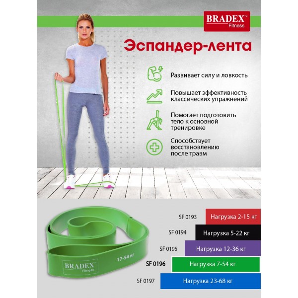 Bradex SF 0196 - ленточный эспандер для эффективной разминки или растяжки, увеличения нагрузки во время различных упражнений.