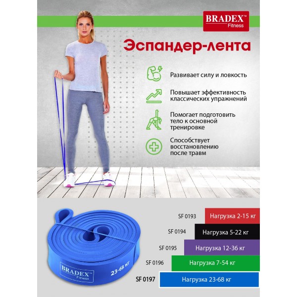 Bradex SF 0197 - ленточный эспандер для эффективной разминки или растяжки, увеличения нагрузки во время различных упражнений.