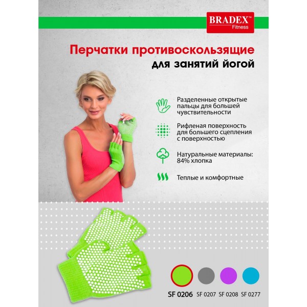 Перчатки для йоги Bradex противоскользящие SF 0206 разработаны для безопасного выполнения самых сложных упражнений. Подойдут на любой размер ладони.
