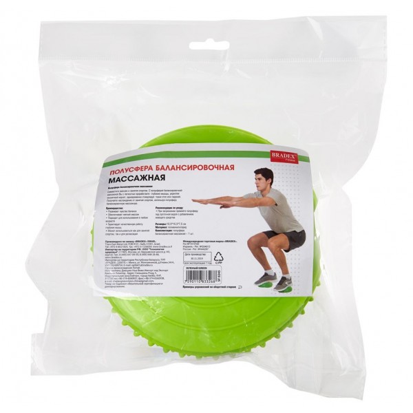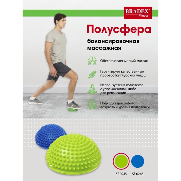 Bradex SF 0245 - балансировочная полусфера с массажным эффектом для стоп и ладоней. Использование такого снаряда повышает эффективность упражнений, развивает координацию, позволяет проработать глубокие мышцы.