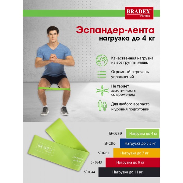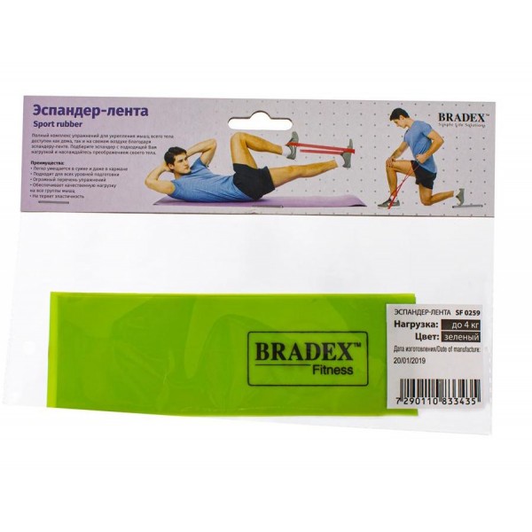 Bradex SF 0259 - ленточный эспандер, чья эластичность позволяет получить дополнительную нагрузку на мышцы во время различных упражнений.