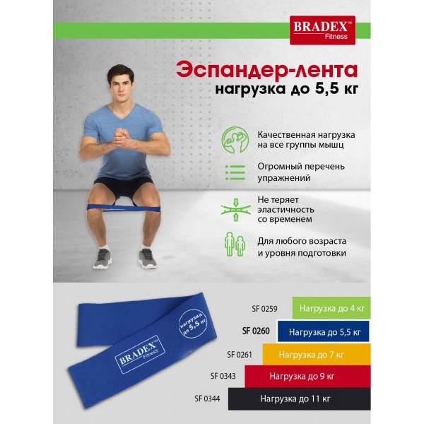 Bradex SF 0260 - ленточный эспандер, чья эластичность позволяет получить дополнительную нагрузку на мышцы во время различных упражнений.
